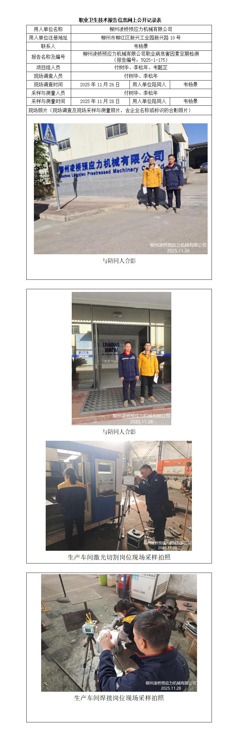 柳州凌橋預(yù)應(yīng)力機械有限公司職業(yè)病危害因素定期檢測 (報告編號:YQ25-1-175)