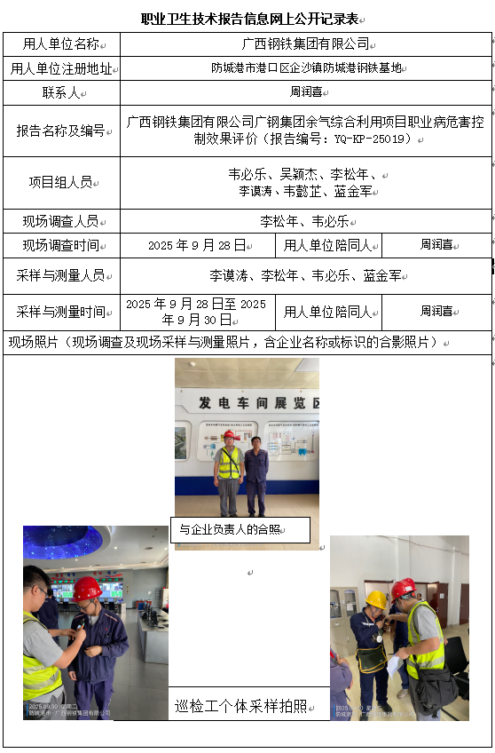 廣西鋼鐵集團(tuán)有限公司廣鋼集團(tuán)余氣綜合利用項目職業(yè)病危害控制效果評價
